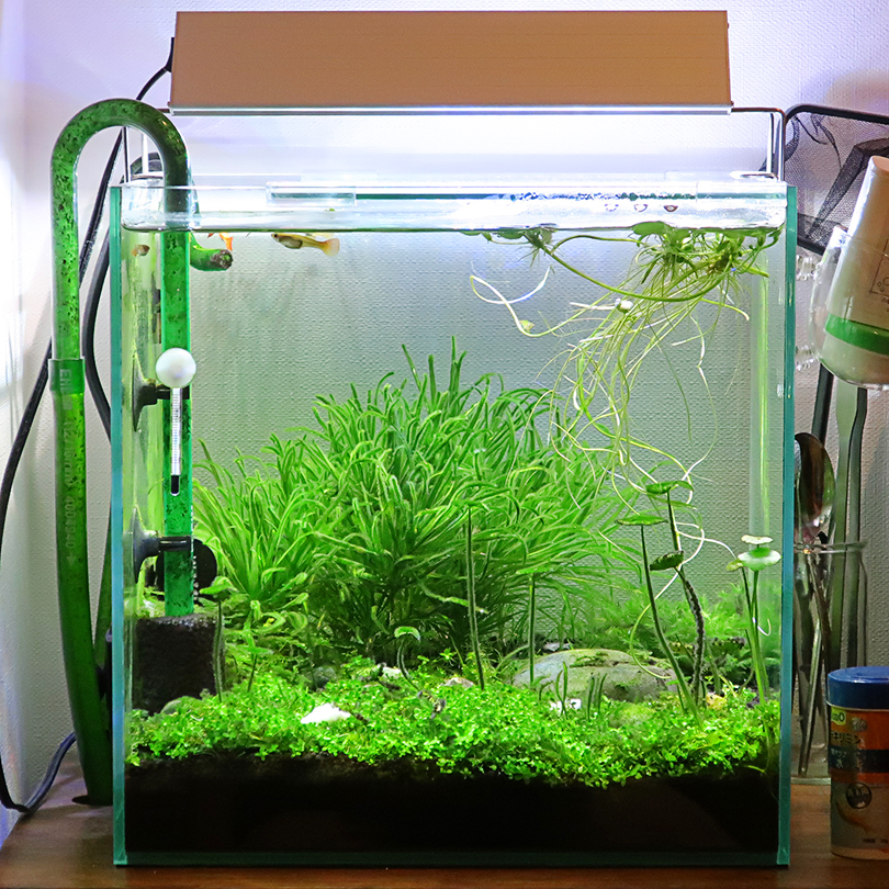 水草の生育状況もみながら、照明点灯時間や液肥添加量やCO2添加量をコントロールした方が良いのかもしれない。
