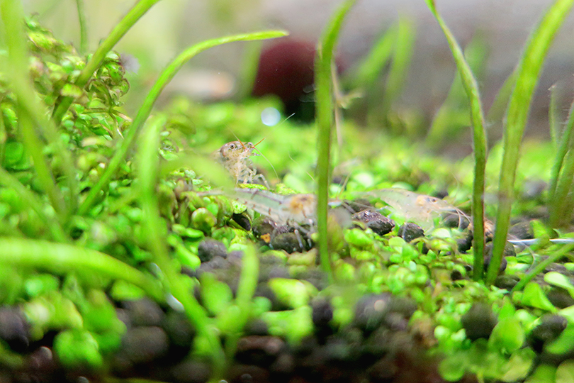 ミナミヌマエビは金魚屋さんで好意で頂いたまま、まだまだ元気に繁殖中。抱卵個体多数。